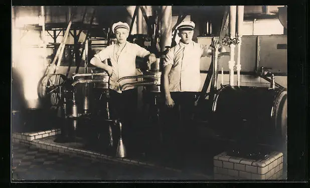 AK Zwei junge Fabrikarbeiter an ihrer Maschine
