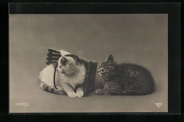 AK Zwei junge Katzen mit einem Körbchen