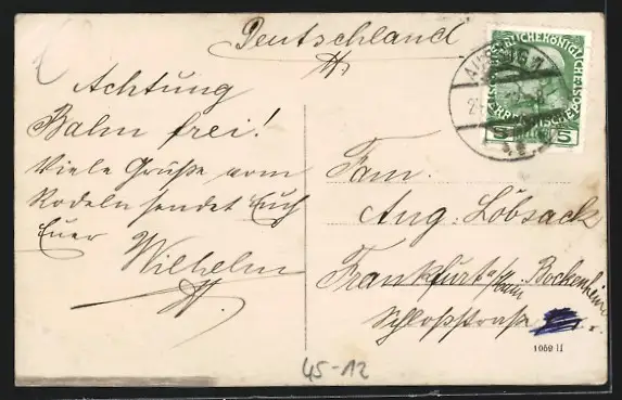 gelaufen 1912, guter Zustand