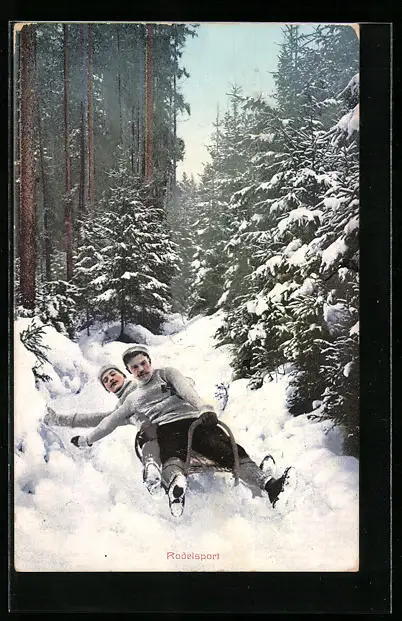 AK Zwei junge Männer bei einer Schlittenfahrt