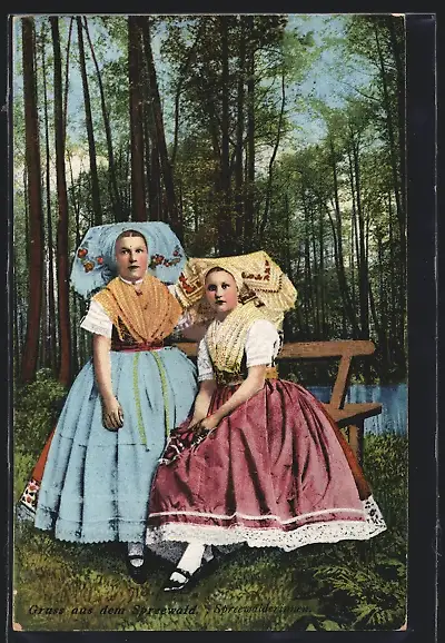 AK Zwei junge Spreewälderinnen in traditioneller Trachtenkleidung