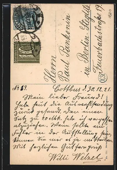 alte Ansichtskarte, gelaufen 1921, guter Zustand