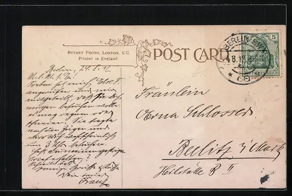 alte Ansichtskarte, gelaufen 1912, Stempelspur, guter Zustand