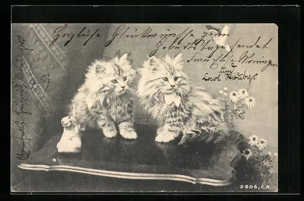 AK Zwei kleine getigerte Katzen auf einem Tisch