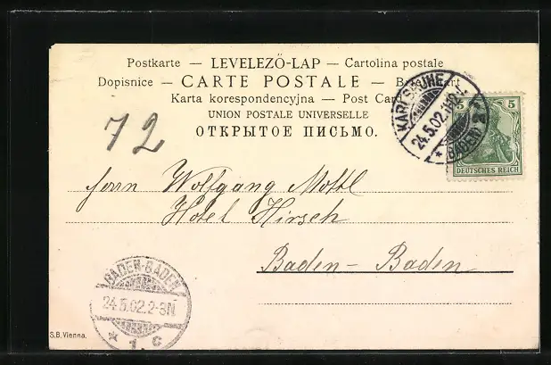 alte Ansichtskarte, gelaufen 1902, Eckschaden oben re., guter Zustand
