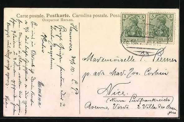 alte Ansichtskarte, gelaufen 1910, guter Zustand