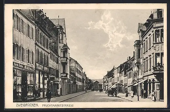 AK Zweibrücken, Blick in die Fruchtmarktstrasse