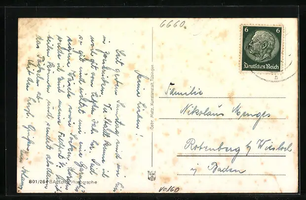 alte Ansichtskarte, gelaufen 1931, Abriebspur oben re., guter Zustand