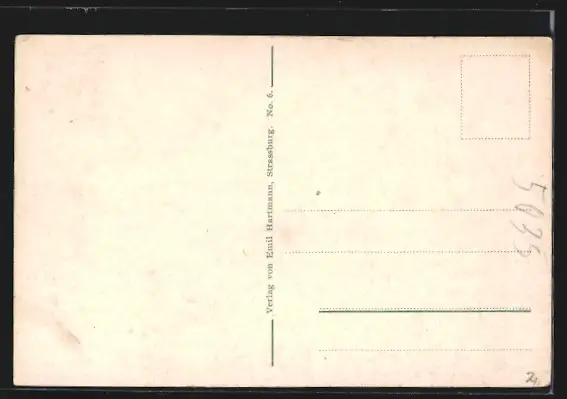 Personenbezogene Daten auf der Rückseite der Karte wurden durch blauen Textmarker unkenntlich gemacht. Die blauen Stellen sind auf die Vorderseite durchgeweicht und wirken sich negativ auf das Postkartenfoto aus