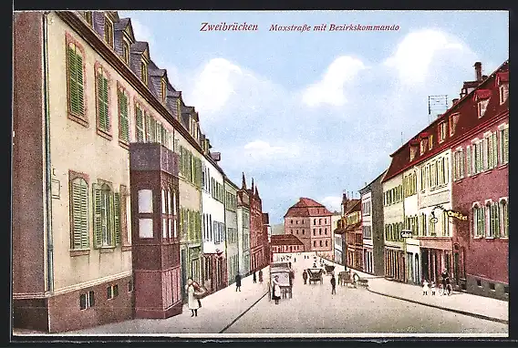 AK Zweibrücken, Maxstrasse mit Bezirkskommando