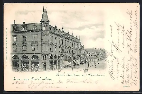 AK Zweibrücken, Neues Kaufhaus mit Maxstrasse