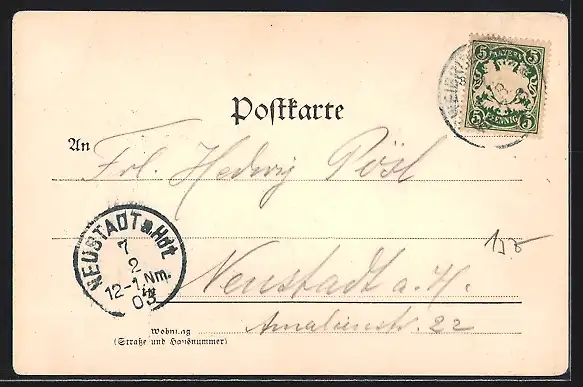 alte Ansichtskarte, gelaufen 1903, guter Zustand