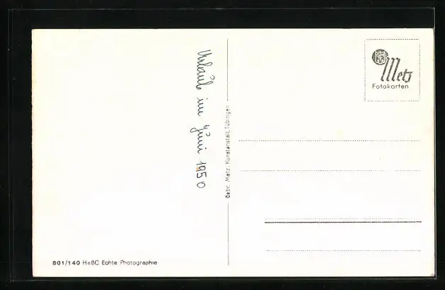 Personenbezogene Daten auf der Rückseite der Karte wurden durch blauen Textmarker unkenntlich gemacht. Die blauen Stellen sind auf die Vorderseite durchgeweicht und wirken sich negativ auf das Postkartenfoto aus