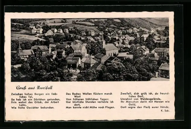 AK Zweifall, Ansicht der Stadt aus der Vogelschau