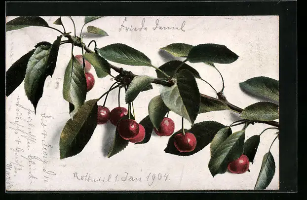 AK Zweig mit roten Kirschen