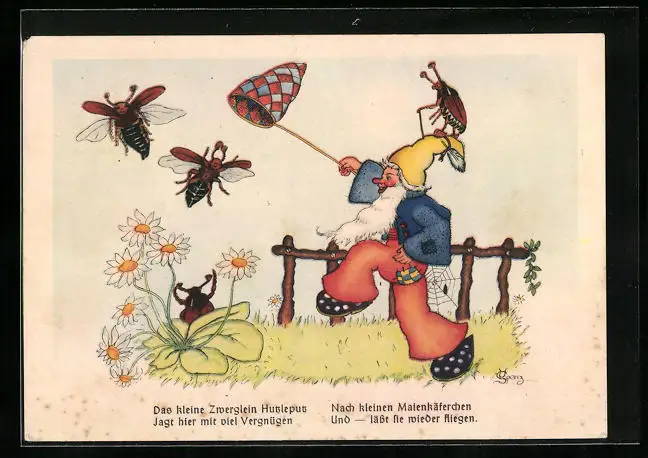 AK Zwerg Hutzleputz auf Maikäferjagd