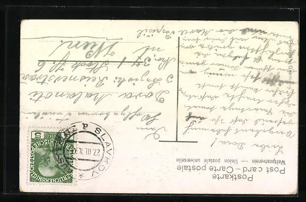 alte Ansichtskarte, gelaufen, Bugspur oben rechts, guter Zustand