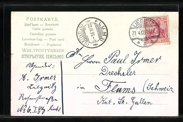 alte Ansichtskarte, gelaufen 1905, Einriss re. mittig, guter Zustand