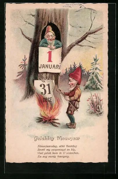 AK Zwerg verbrennt altes Kalenderblatt