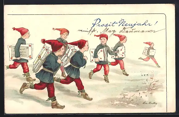 AK Zwerge teilen die Post aus, Prosit Neujahr