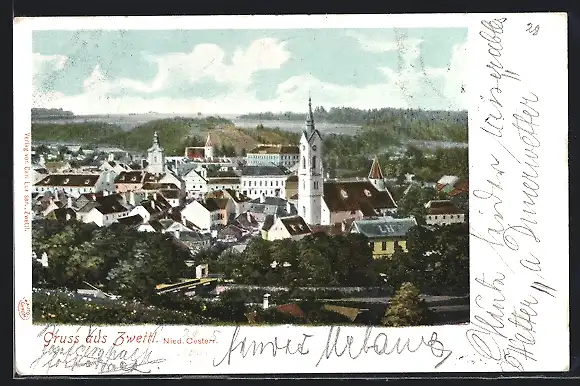 AK Zwettl, Blick zum Ort mit Kirche um 1900