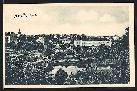 AK Zwettl /N.-Oe., Ortspartie mit Kirche