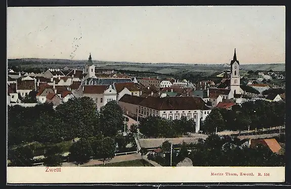 AK Zwettl /N.-Oe., Teilansicht mit Kirche