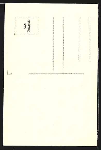 Personenbezogene Daten auf der Rückseite der Karte wurden durch blauen Textmarker unkenntlich gemacht. Die blauen Stellen sind auf die Vorderseite durchgeweicht und wirken sich negativ auf das Postkartenfoto aus