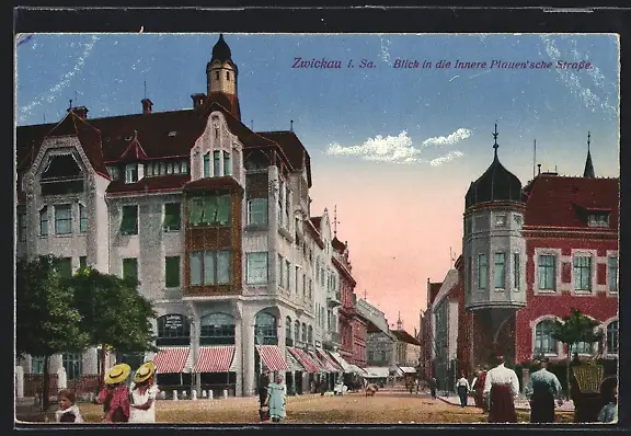 AK Zwickau, Blick in die innere Plauen'sche Strasse