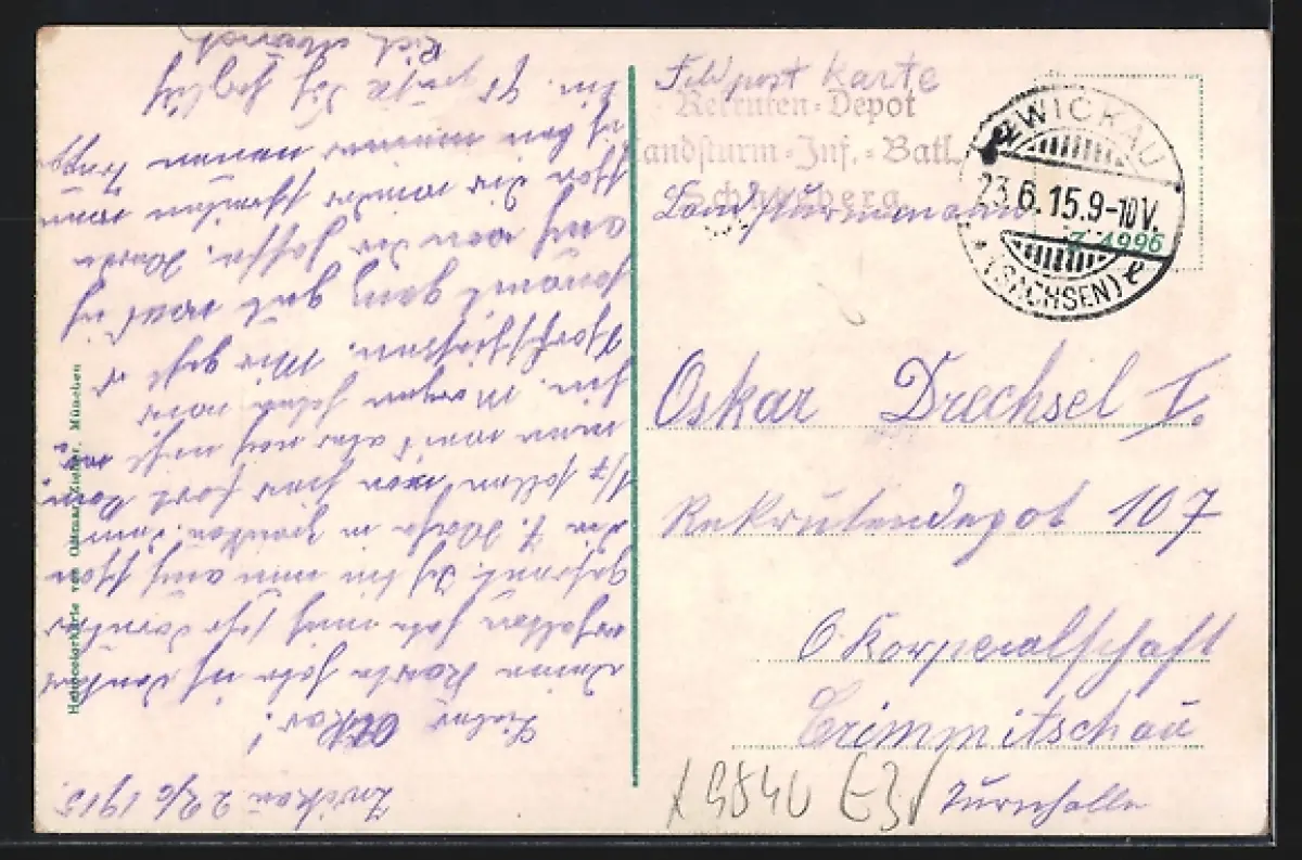 alte Ansichtskarte, gelaufen 1915, Stempelspur, guter Zustand