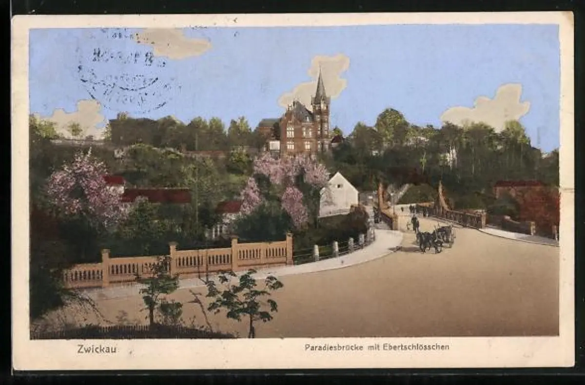AK Zwickau, Paradiesbrücke, Ebertschlösschen