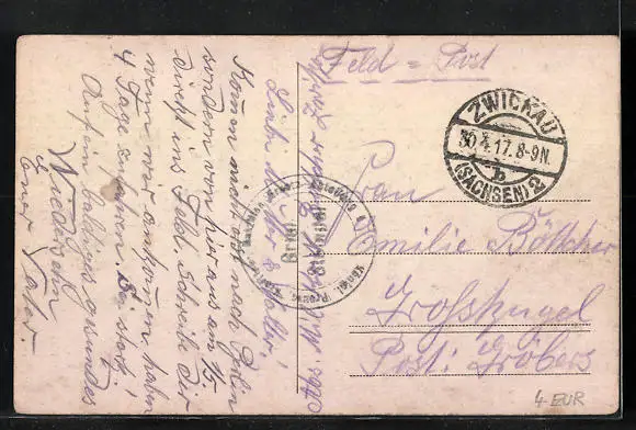 gelaufen 1917 als Feldpost, guter Zustand