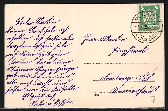 alte Ansichtskarte, gelaufen 1925, guter Zustand