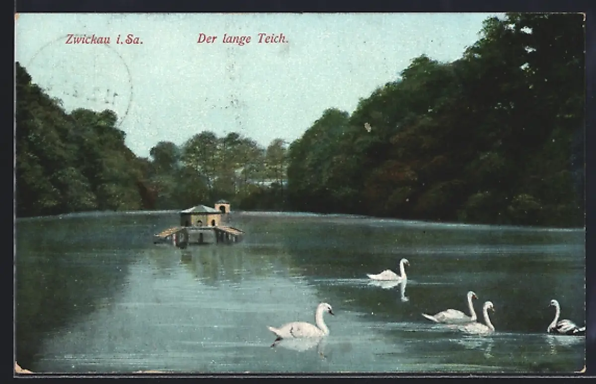 AK Zwickau i. Sa., Der lange Teich, Schwäne