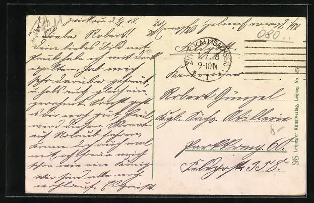 alte Ansichtskarte, gelaufen 1918, Eckknicke oben, guter Zustand