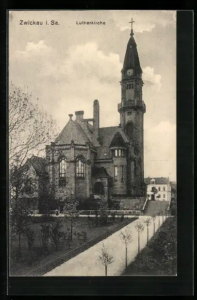 AK Zwickau i. Sa., Ortspartie an der Lutherkirche