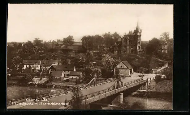 AK Zwickau i. Sa., Paradiesbrücke mit Ebertschlösschen