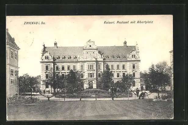 AK Zwickau i. Sa., das kaiserliche Postamt mit dem Albertplatz