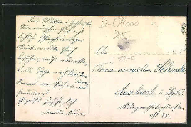 alte Ansichtskarte, gelaufen, Briefmarke entfernt, rückseitig Oberflächenschaden, guter Zustand