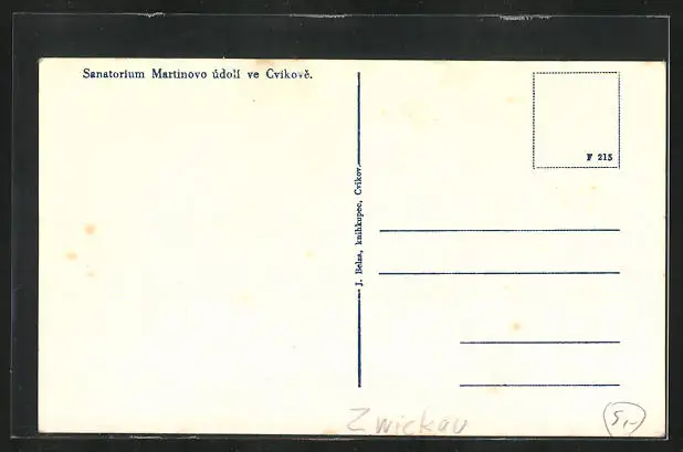 AK Zwickau i.B. / Cvikov, Sanatorium Martinovo udoli ve Cvikove