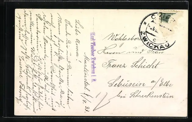 alte Ansichtskarte, gelaufen 1933, Briefmarke entfernt, Briefmarke entfernt, guter Zustand