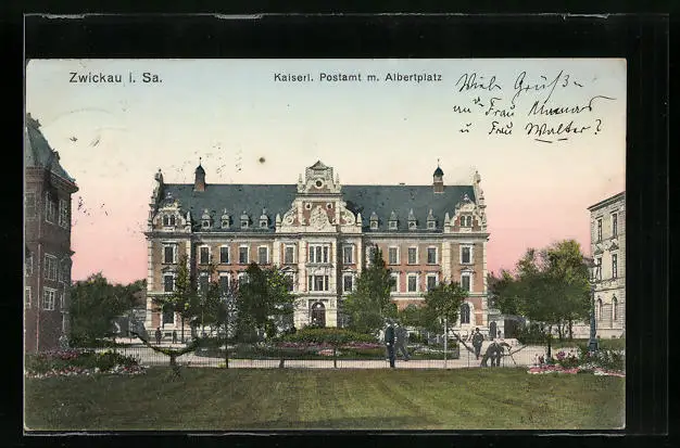 AK Zwickau in Sa., das kaiserliche Postamt mit dem Albertplatz
