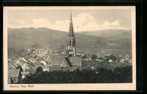AK Zwiesel /Bayr. Wald, Ortsansicht mit Kirche aus der Vogelschau