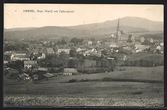 AK Zwiesel /Bayr. Wald, Ortsansicht mit dem Falkenstein