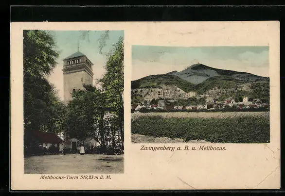 AK Zwingenberg a. B., Teilansicht, Melibocus-Turm