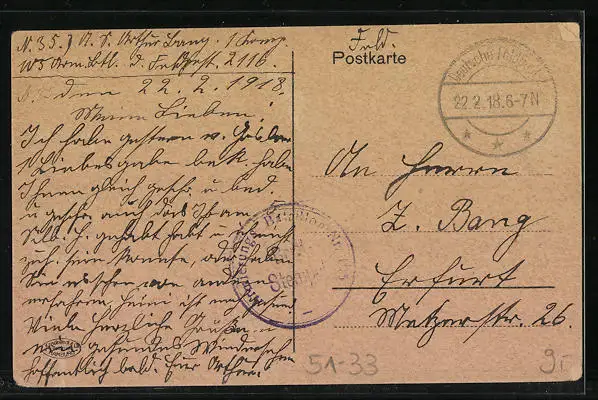 alte Ansichtskarte, gelaufen 1918, Eckknicke li., guter Zustand