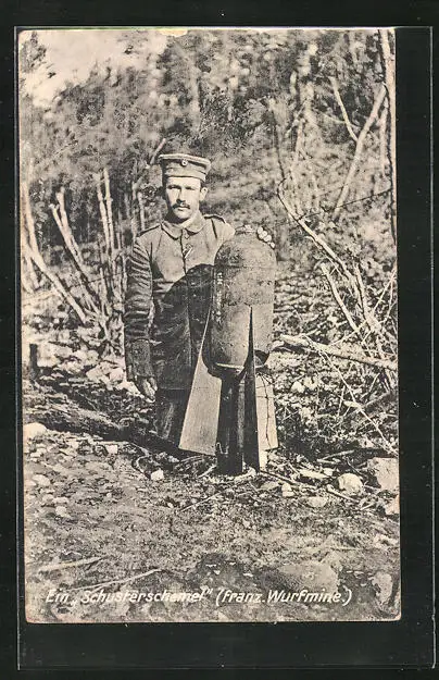 AK deutscher Soldat mit franz. Wurfmine Schusterschemel