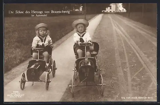 AK die Söhne des Herzogs von Braunschweig fahren Tretautos