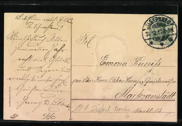 alte Ansichtskarte, gelaufen 1910, Kante unten beschnitten