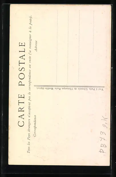 Personenbezogene Daten auf der Rückseite der Karte wurden durch blauen Textmarker unkenntlich gemacht. Die blauen Stellen sind auf die Vorderseite durchgeweicht und wirken sich negativ auf das Postkartenfoto aus